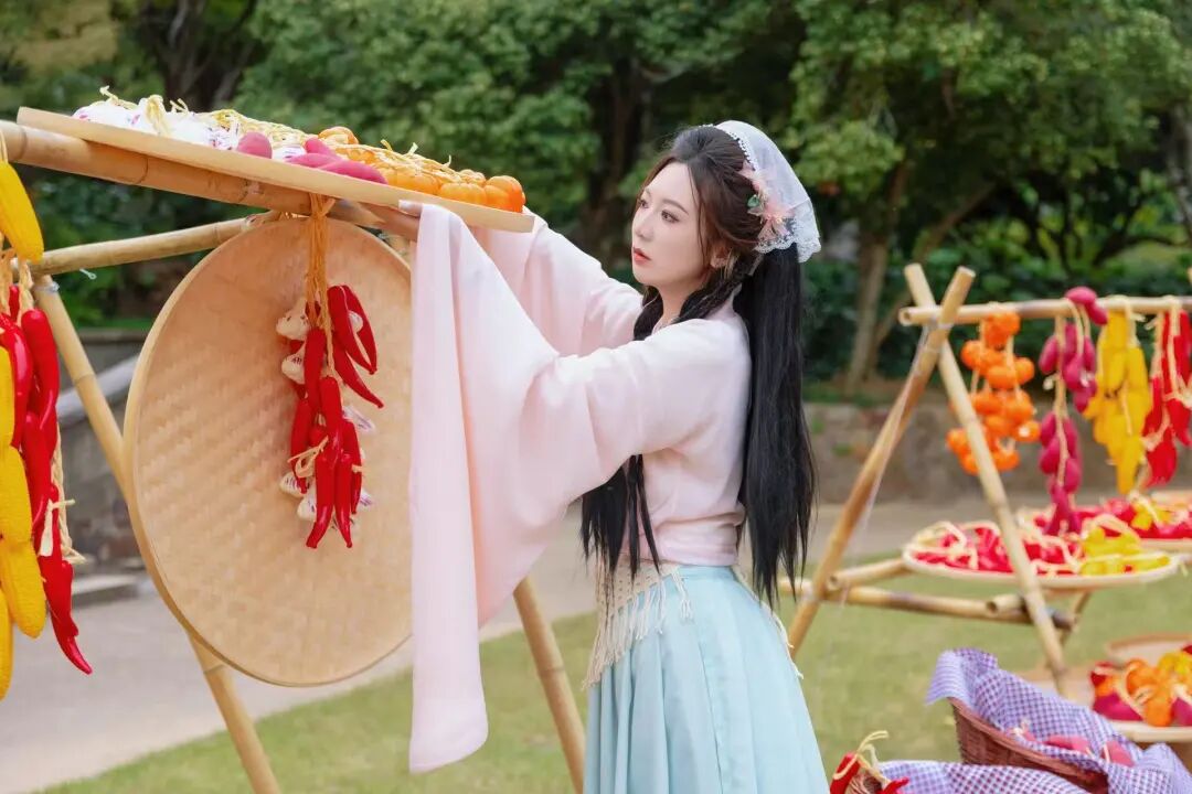 把秋天的丰盈,酿成一幅会呼吸的民俗画。 晨光里,长杆垂下串串红辣椒,像燃烧的小火苗; 午后,竹匾里的玉米棒子叠成金字塔,折射出蜜糖般的光; 秋色与暮色共舞,芦苇丛沙沙应和着风声,与晒架上的南瓜、红薯一起,被温暖的色调包裹。