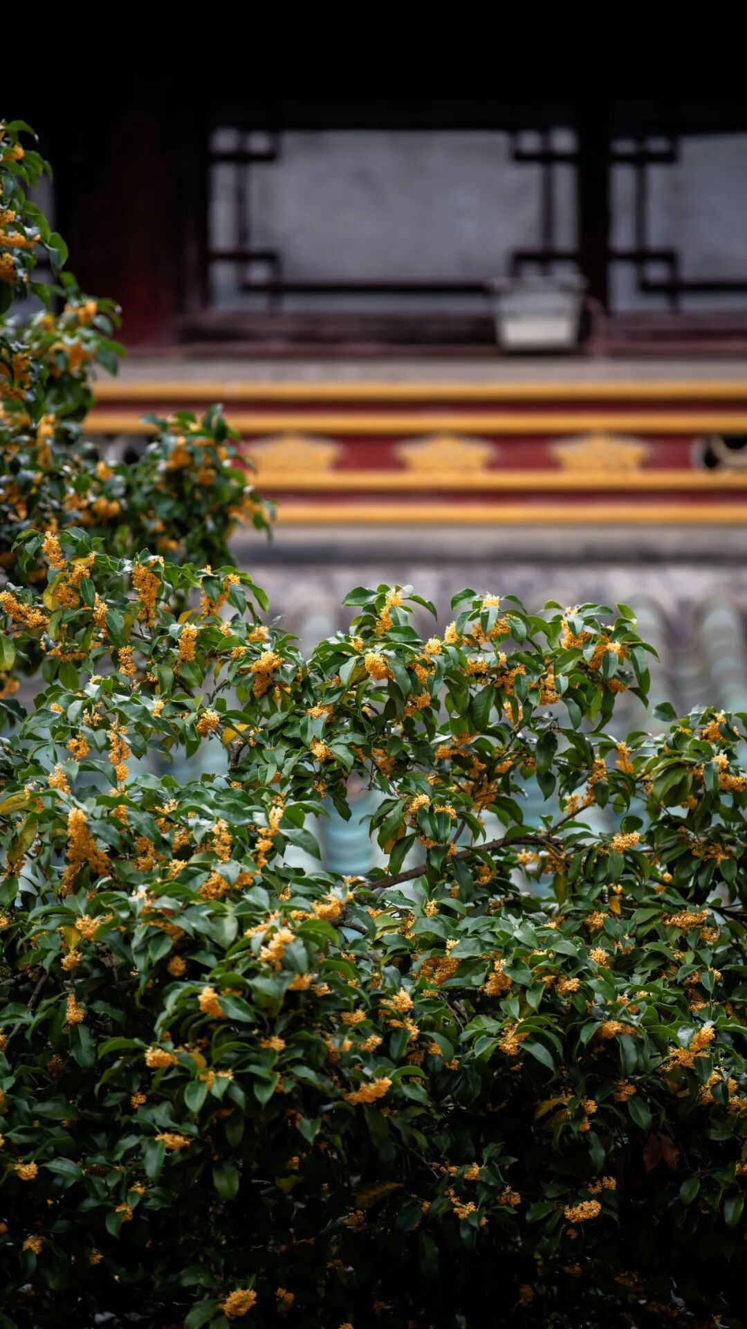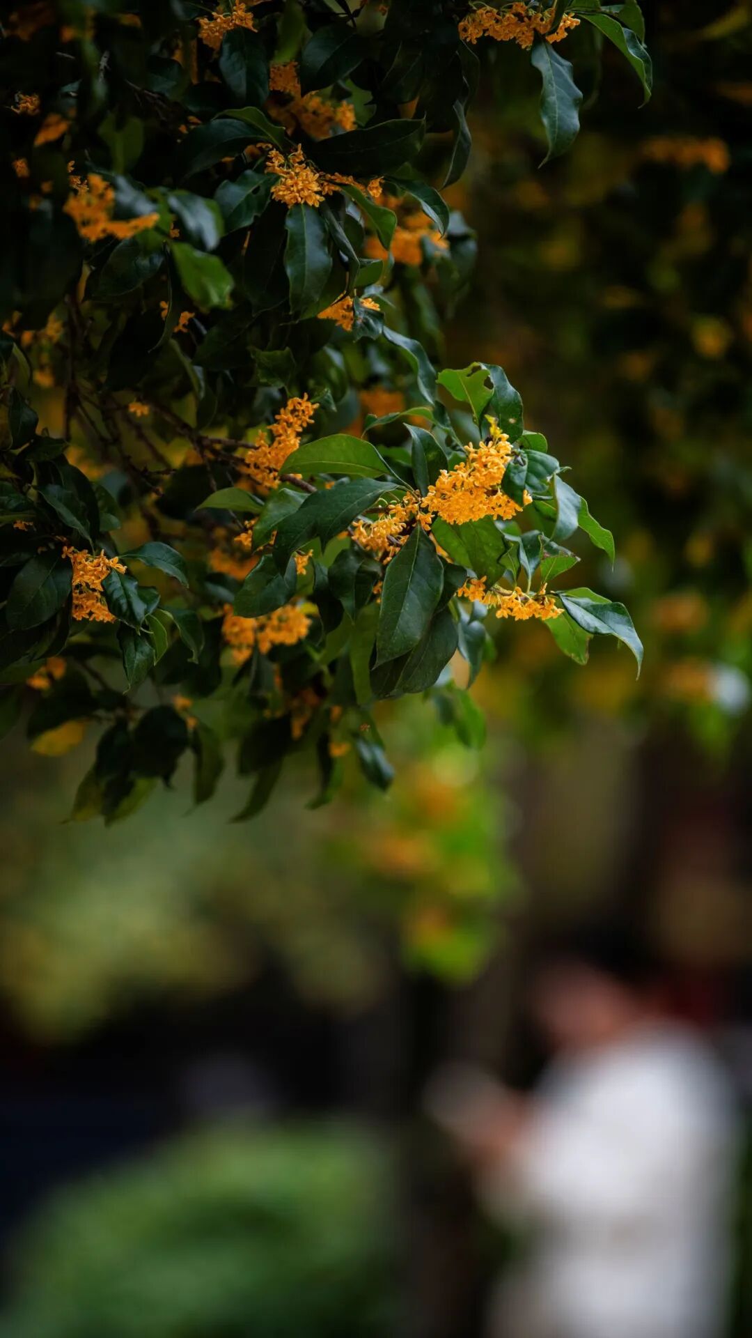 经过雨水的洗礼,桂花的香气更加清新怡人,仿佛在用自己的方式告别这个秋天。仔细看那桂树枝头,依然点缀着金色、银色的花朵,在雨中更显娇嫩。
