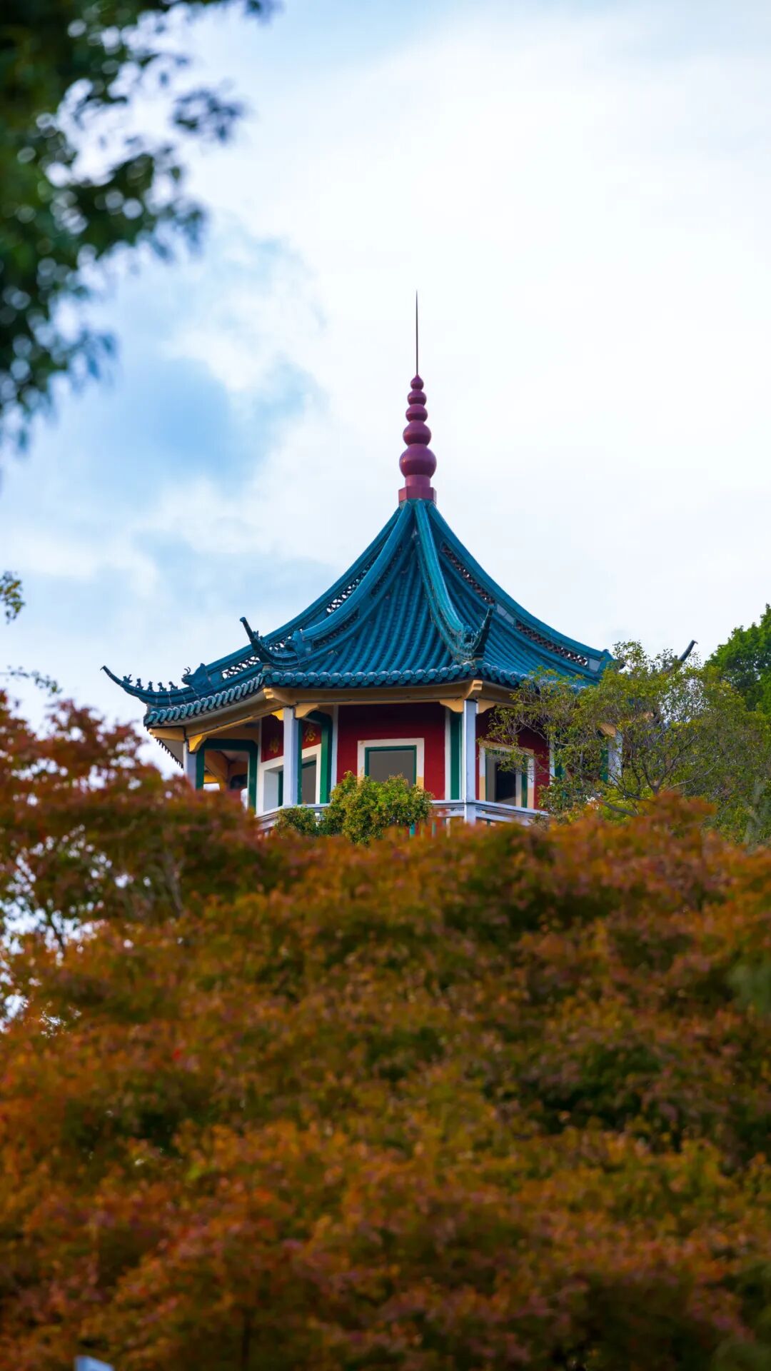 乌桕、银杏、枫树、槭树等树木,叶片或金黄、或火红、或橙黄,正在逐渐变色,即将交织出一幅更加绚丽多彩的秋日画卷!雨水滋润后的色叶,颜色更加饱和艳丽,在灰蒙蒙的天空下格外醒目。