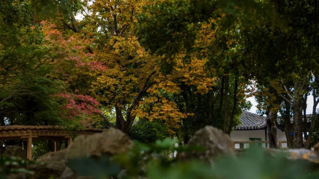 | 雨落园林,秋意未远!梅园里藏着最后的深秋 |