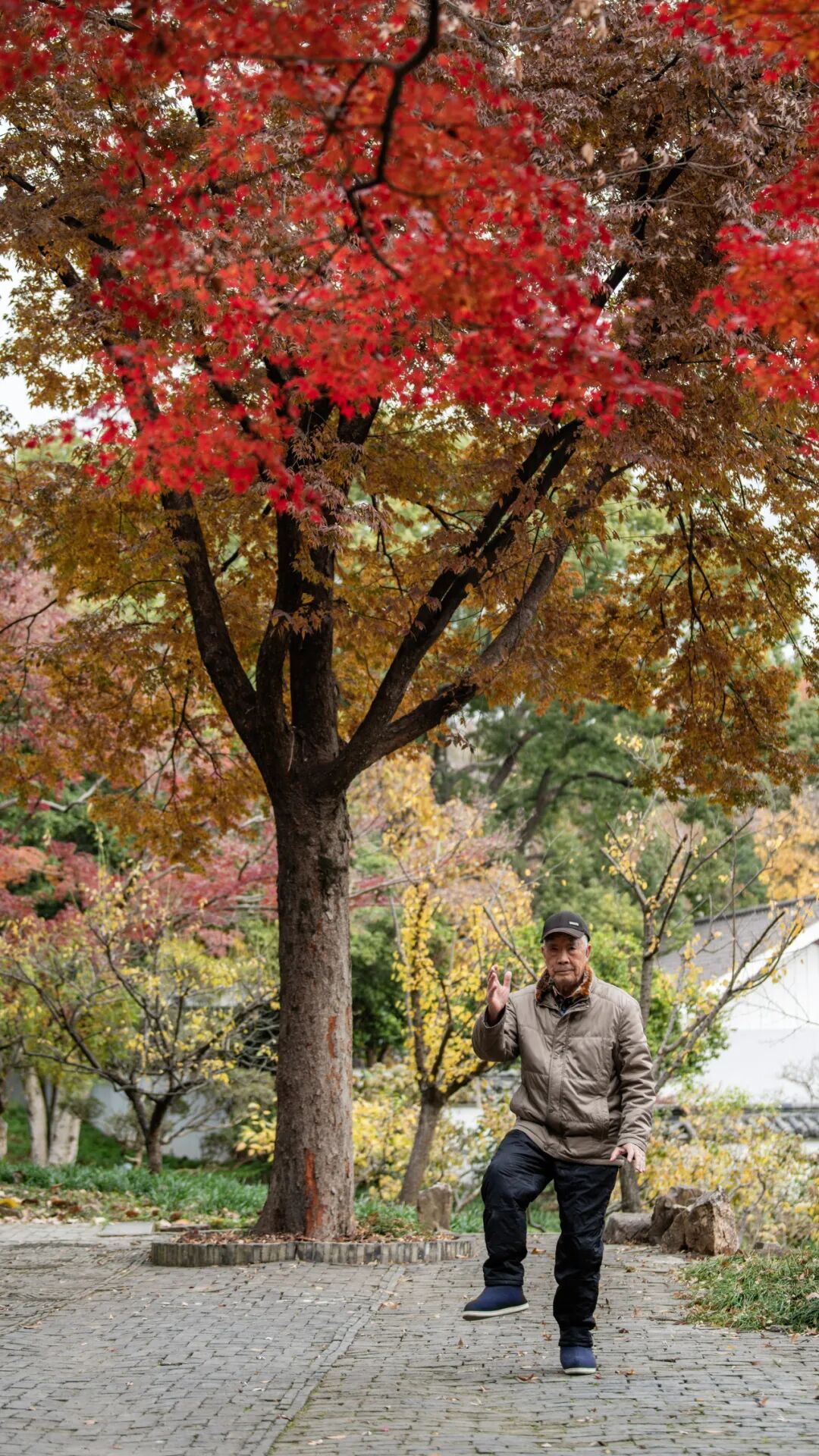 秋日的梅园,色彩是最动人的笔触。纪录片里春日的白梅、红梅此刻化作了 “层林尽染”:银杏将枝头染成金黄,阳光穿过叶片,在地面投下细碎的金箔;鸡爪槭褪去翠绿,晕开深浅不一的绯红,像被秋霜点染的胭脂;