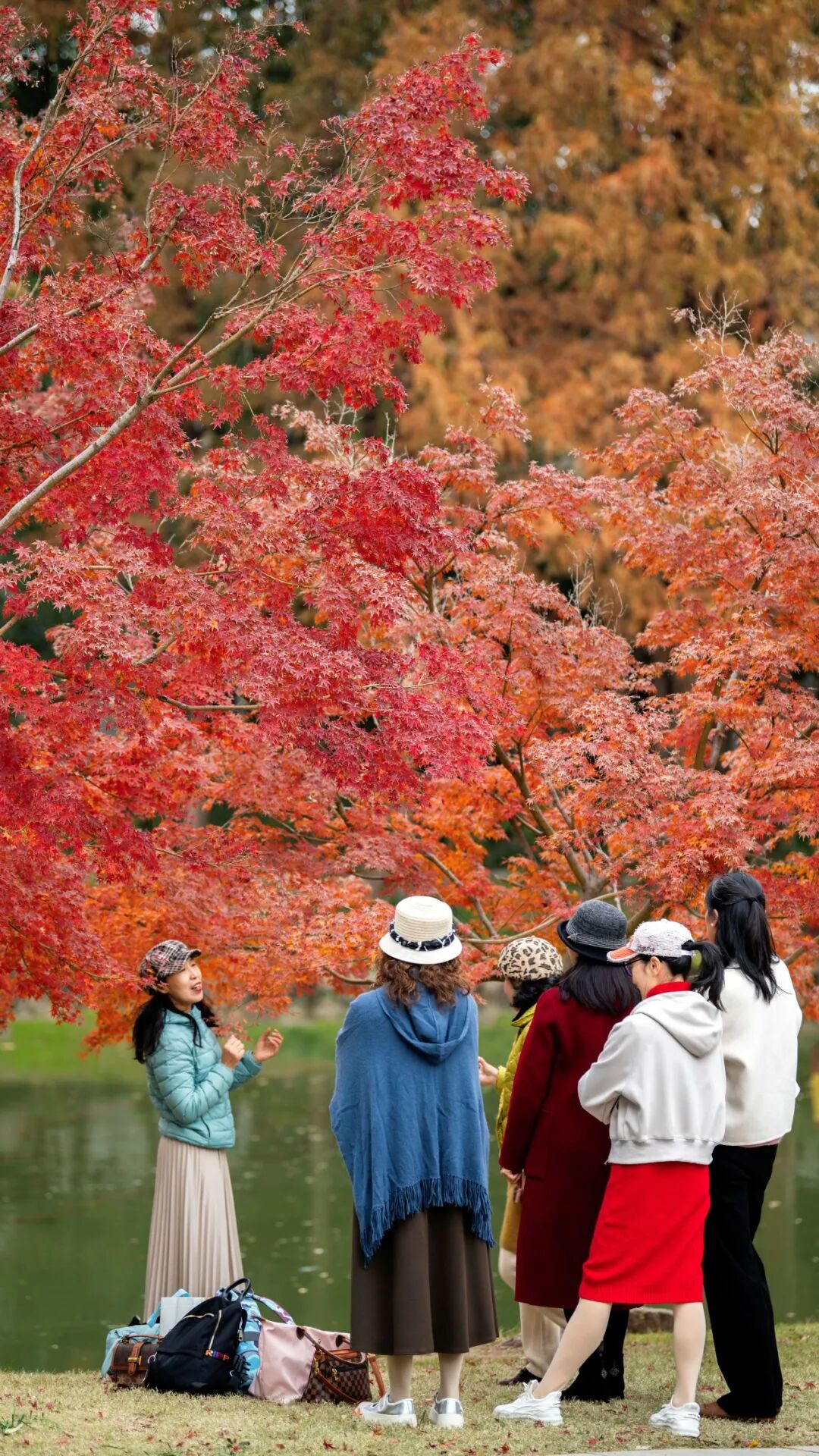 ![]() 猫猫咪呀! (橙红的梅园) ![]() 刚踏入园门,视线就被水边那排落羽杉勾住了 —— 橙红的枝叶像被初冬的阳光浸软了,层层叠叠垂在水面上,波纹一荡,连影子都泛着暖融融的光。而这暖色调里,藏着一群梅园最“慵懒”的喵星人,陪伴着来来往往的游人,享受着冬日限定美景。 ![]()