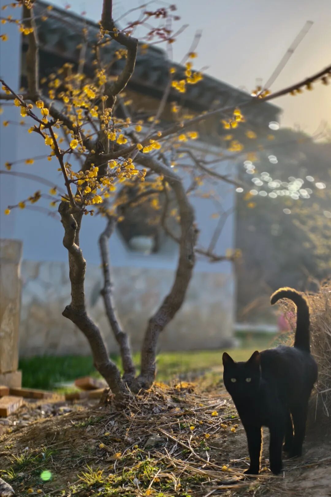 石桌上还留着猫爪拨过的枫叶,落叶间沾着几根软绒绒的猫毛 —— 原来这群小家伙,早把自己的温柔,缝进了梅园的初冬里。