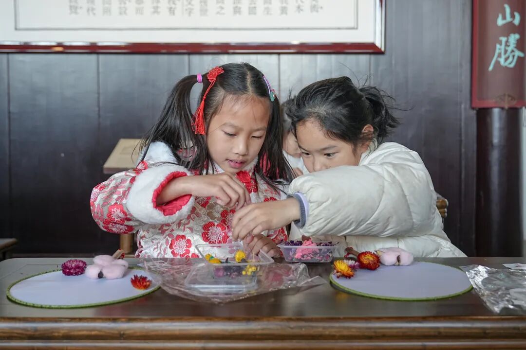 ▫️ 福启马年・福字签到:在活动入口领取马年主题福字卡,亲手写下姓名与新年祝福,开启研学之旅; ▫️ 萌马送福・开场领贴纸:详解活动流程与意义,参与马年祝福语接龙互动,每位参与者均可领到可爱的小马贴纸; ▫️ 暗香寻梅・蜡梅科普之旅:专业科普讲解师带队,讲解蜡梅的品种、生长习性等知识,穿插趣味提问,答对有小礼品; ▫️ 梅香雅韵・DIY香薰蜡牌:亲手制作独一无二的香薰蜡牌,跟着指导老师学习融化蜡块、倒入模具、装饰定型,完成后可晾干带走; ▫️ 非遗寻味・非遗糕团体验&香煎年糕品鉴:了解非遗糕团的文化背景与工艺核心,分组体验简化制作环节,品尝香煎年糕,暖心又暖胃。