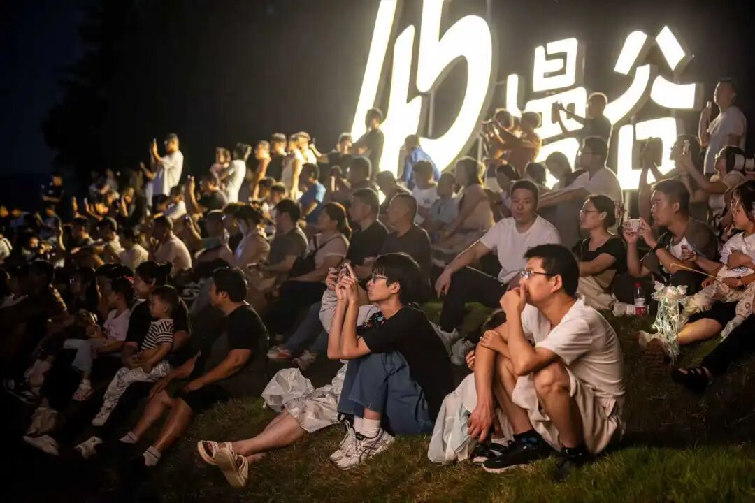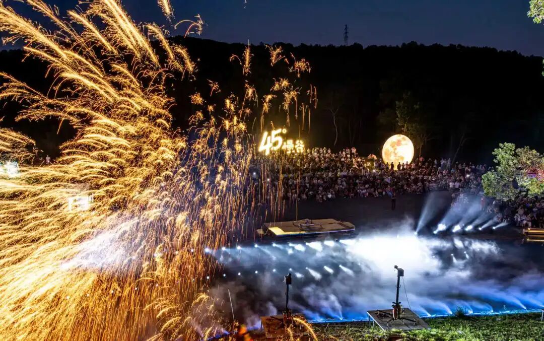 地平线吞没最后一粒光,草地开始分泌月光 45°慢谷瞬间切换为天然临水舞台 成为整个梅园灯会最吸睛的所在