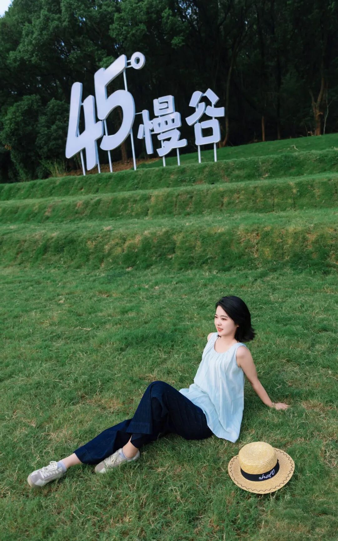 梯田草坪顺着斜坡错落铺开,暖黄灯光像给草地镀上了一层金边。这里是无锡人最新的「朋友圈顶流」,更是被称为「躺平圣地」的 45° 慢谷 —取名的巧思藏着生活哲学:比躺平多一分清醒,比站立少一分紧绷