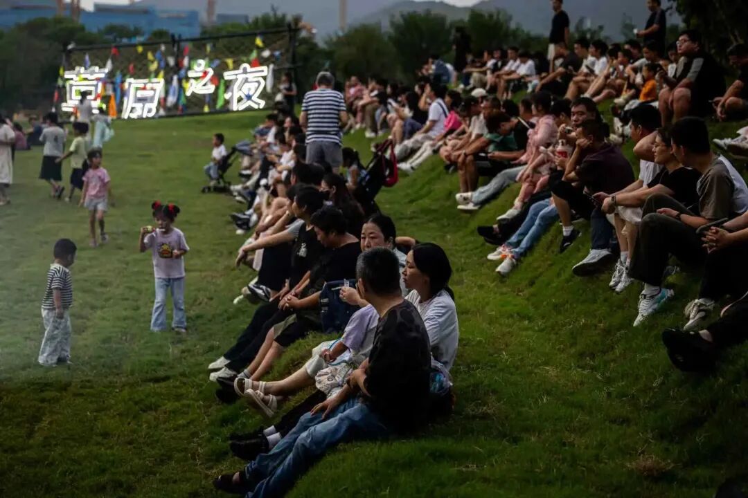 当星空为幕,灯影为缀 45° 慢谷的阶梯式草坪就成 「鸣沙山同款」天然音乐厅
