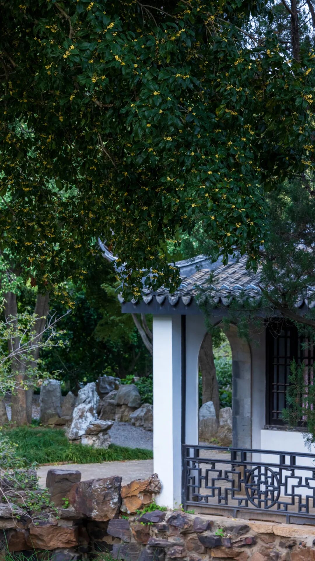 梅园香海周边都是波叶金桂,十月中旬开花,叶片波状、革质,初花金黄,但不结果。荣德生先生曾种植此树,为此地增香。而今,这些桂花已经成为了见证时代变迁的古树名木。