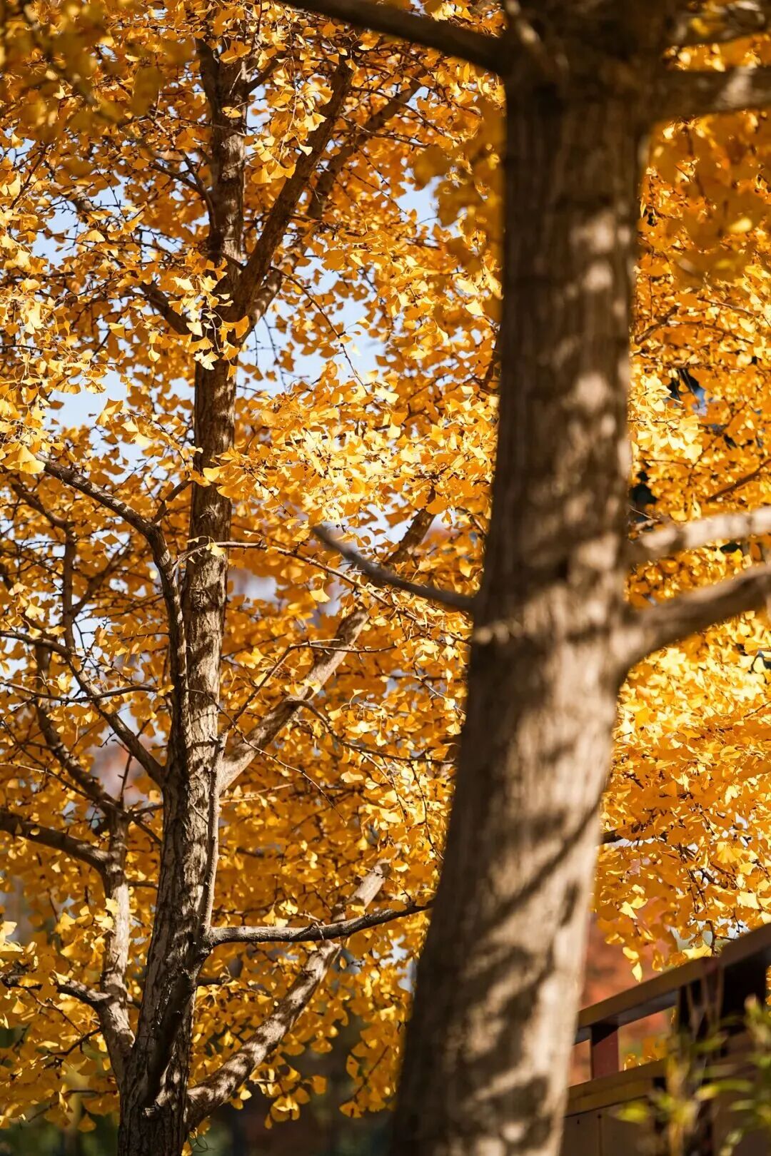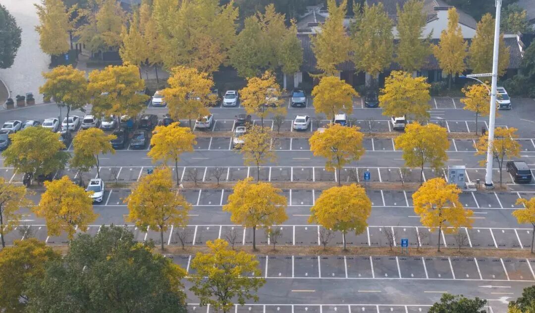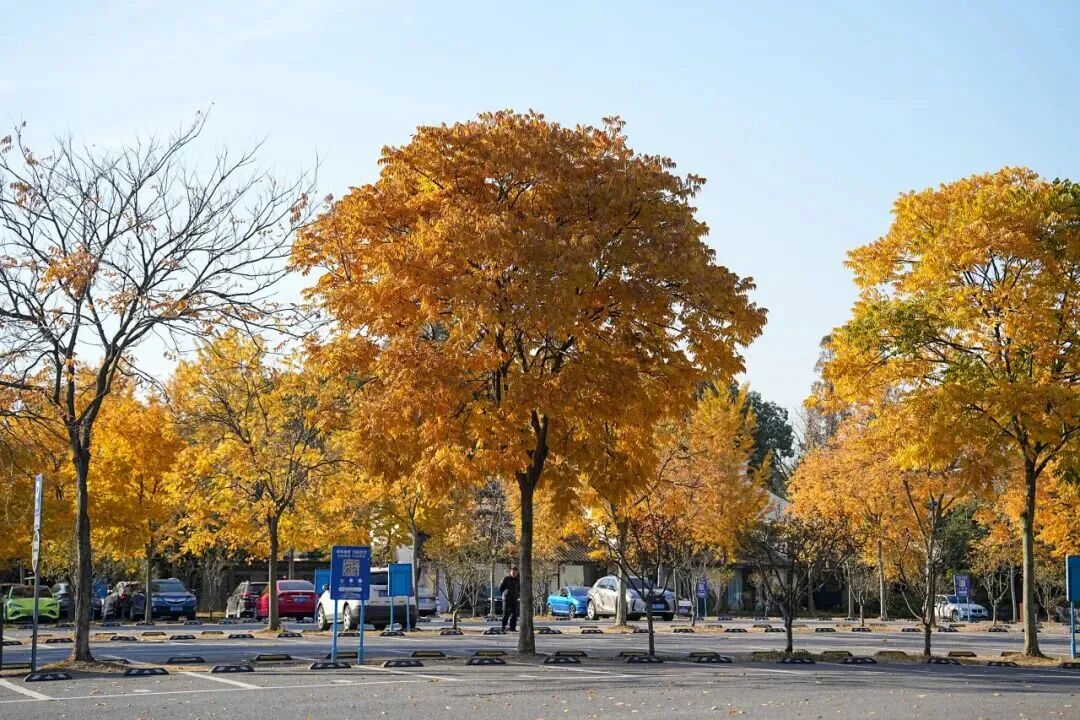 人间满目皆清欢唯有银杏不负秋。梅园景区入口处的秋色也值得期待!排列成侧的银杏树,太阳没有出来前,是深秋的颜色;当阳光的洗礼后,便是绚丽的秋色。这里是一条通向美好的隧道,奔向美好的开始。