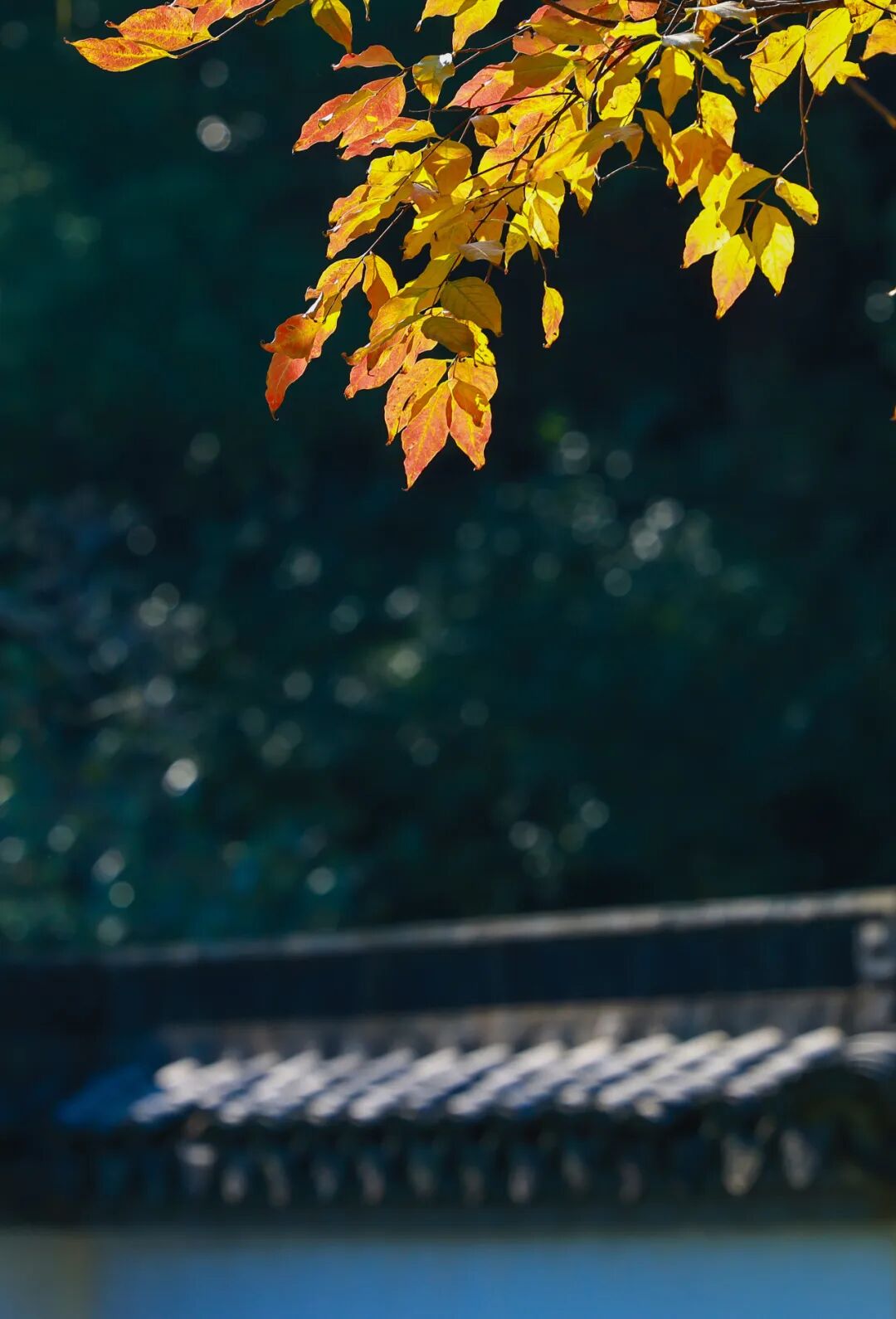 秋季的太阳,没有夏季灼热的烈日,也不似冬天寒冷的阳光。阳光洒落,将夏日绿色的园区染上了不同的色。 清风吹过,微黄的树叶在风的吹拂下左右摇摆,伴随着沙沙的声响,树叶也随风飘落。落在屋顶上,道路旁,树丛中,点缀整个景区的景色。