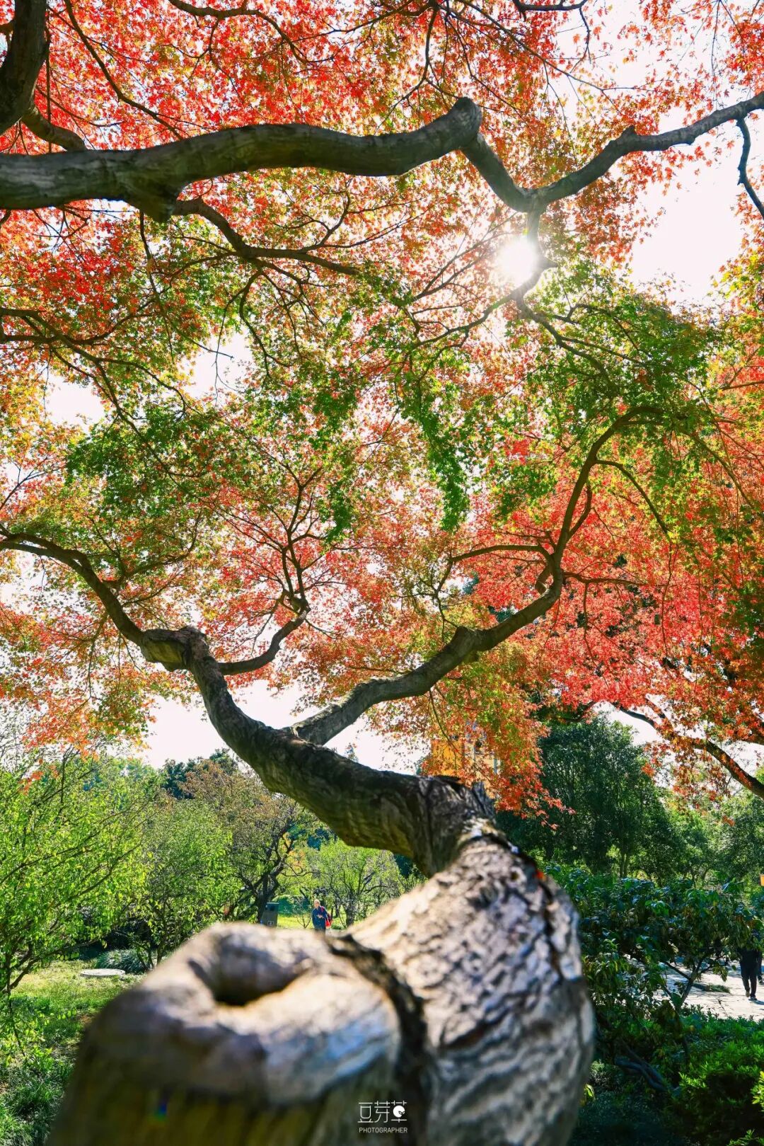 这株百年紫藤,不仅是梅园历史的见证者,更是秋日景致的 “调和者”。当满园枫叶火红、银杏金黄时,它以柔和的黄绿色调平衡着秋的浓烈,藤干的苍劲与落叶的柔美形成巧妙对比,让秋景多了层次与深度。