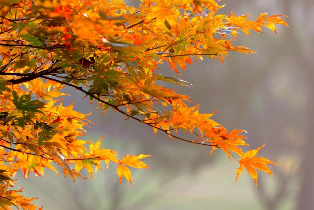 转至清芬轩旁,枫树则演绎着另一种热烈:青枫染绯红,三角枫晕橙黄,深浅不一的红色与黄色交织,风过时叶片摇曳,宛如一场 “秋日红雨”,为古木添了抹亮色。
