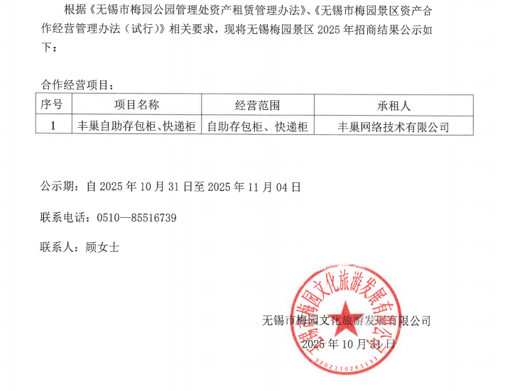 梅园景区2025年招商结果公示