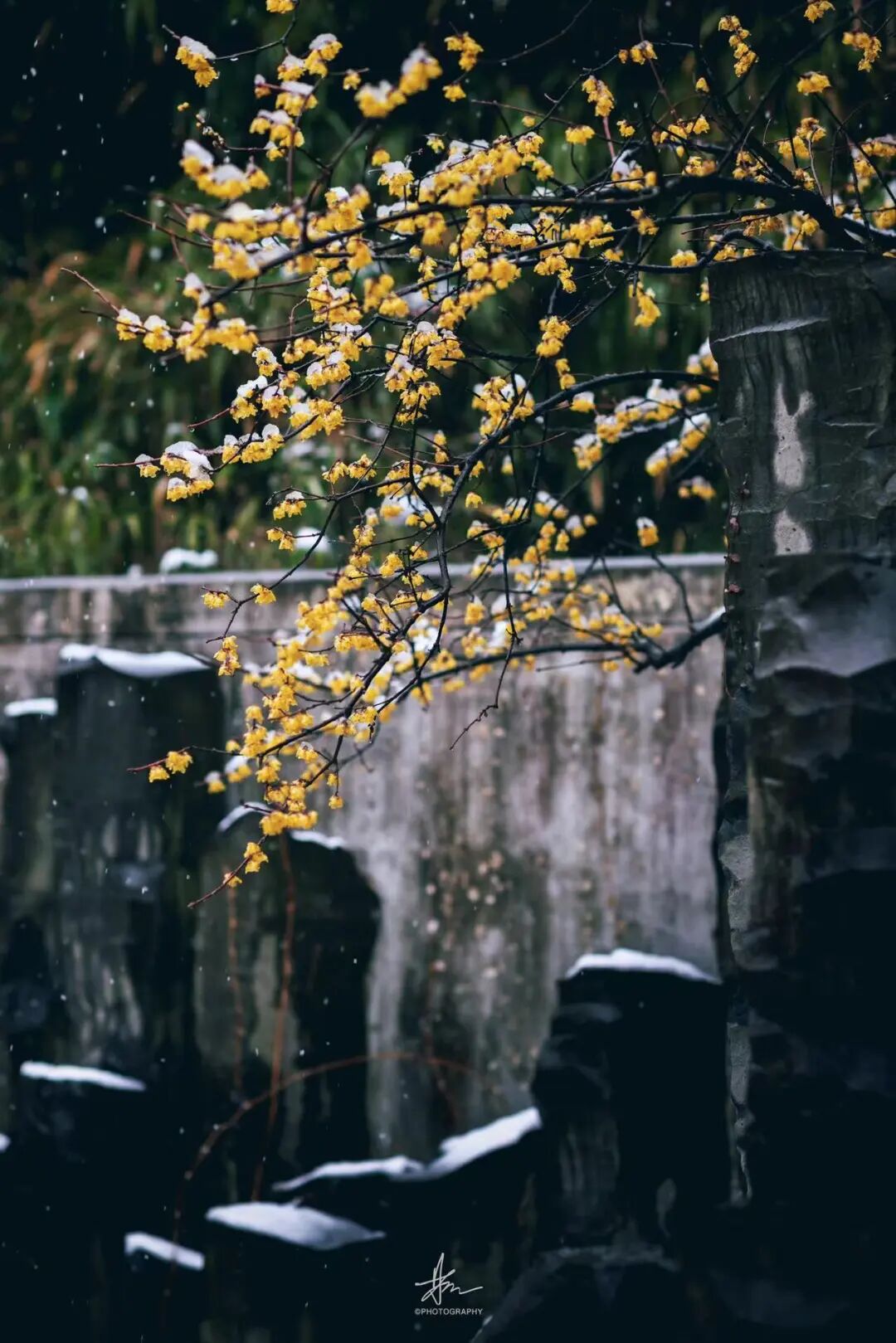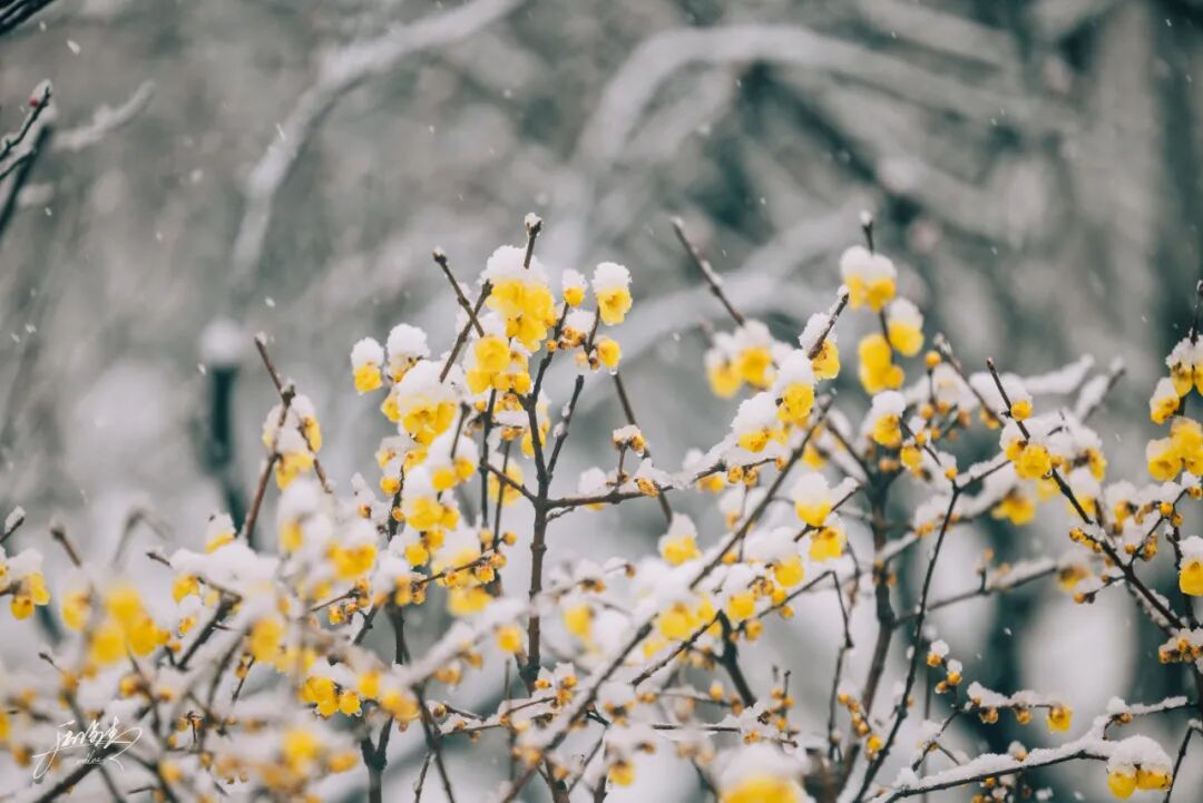 ![]() 冬日亮色 WINTER DAY ![]() ![]() 江南雪里花如玉。 ![]() 在这片素白之中,蜡梅无疑是冬日的亮色。梅园千余株蜡梅此刻正蓄力绽放,主干道、古梅奇石圃等处的蜡梅已然成片,金黄的花萼裹着细碎雪粒,宛如琥珀镶嵌枝头,在白雪映衬下更显澄澈明艳。