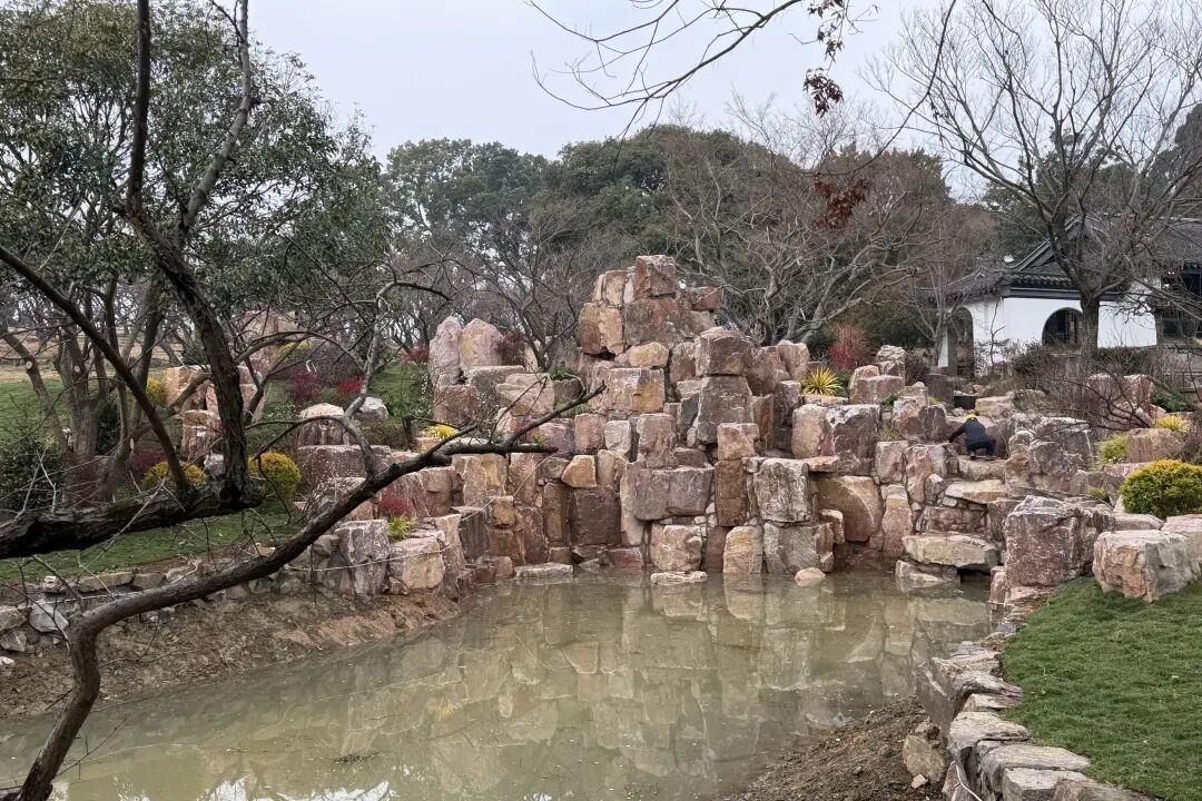目前叠瀑已初具雏形,待到2月中下旬周边梅花盛放时,水流依山势层层跌落,溅起细碎的水花,潺潺水声悦耳动听,与古台飞檐、虬曲梅枝相映成趣,给这处老牌景点注入了满满的灵动生机,解锁赏梅新视角!