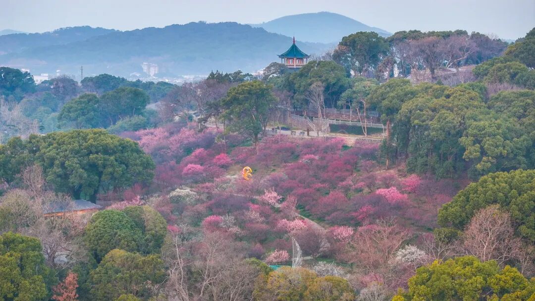 据悉今年梅园早梅已初绽,预计2月中下旬将迎来全园盛花期,届时红粉缀岭、暗香漫溢,美到失语~