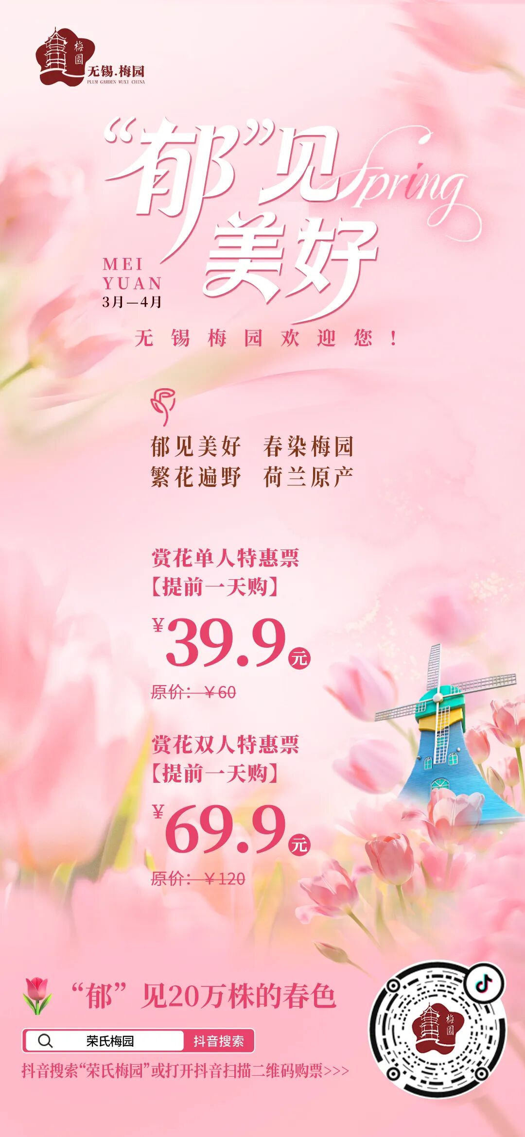 ![]() 无需远赴荷兰,在梅园就能邂逅同款阿姆斯特丹春日浪漫,郁金花海・百花探春畅玩,美景尽含在入园门票中,一步一景皆是浪漫。