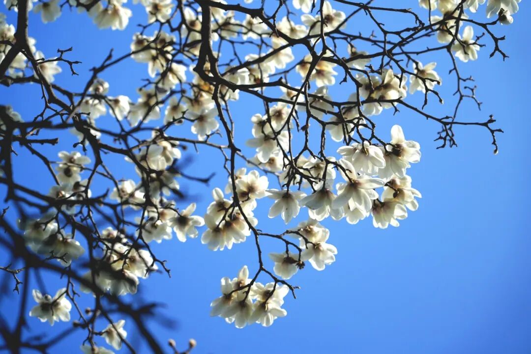 还有白、粉玉兰花树亭亭而立,层层花瓣温润舒展,或素白胜雪、清雅脱俗,或粉晕轻染、温婉动人,微风拂过,花瓣轻颤,暗香浮动~
