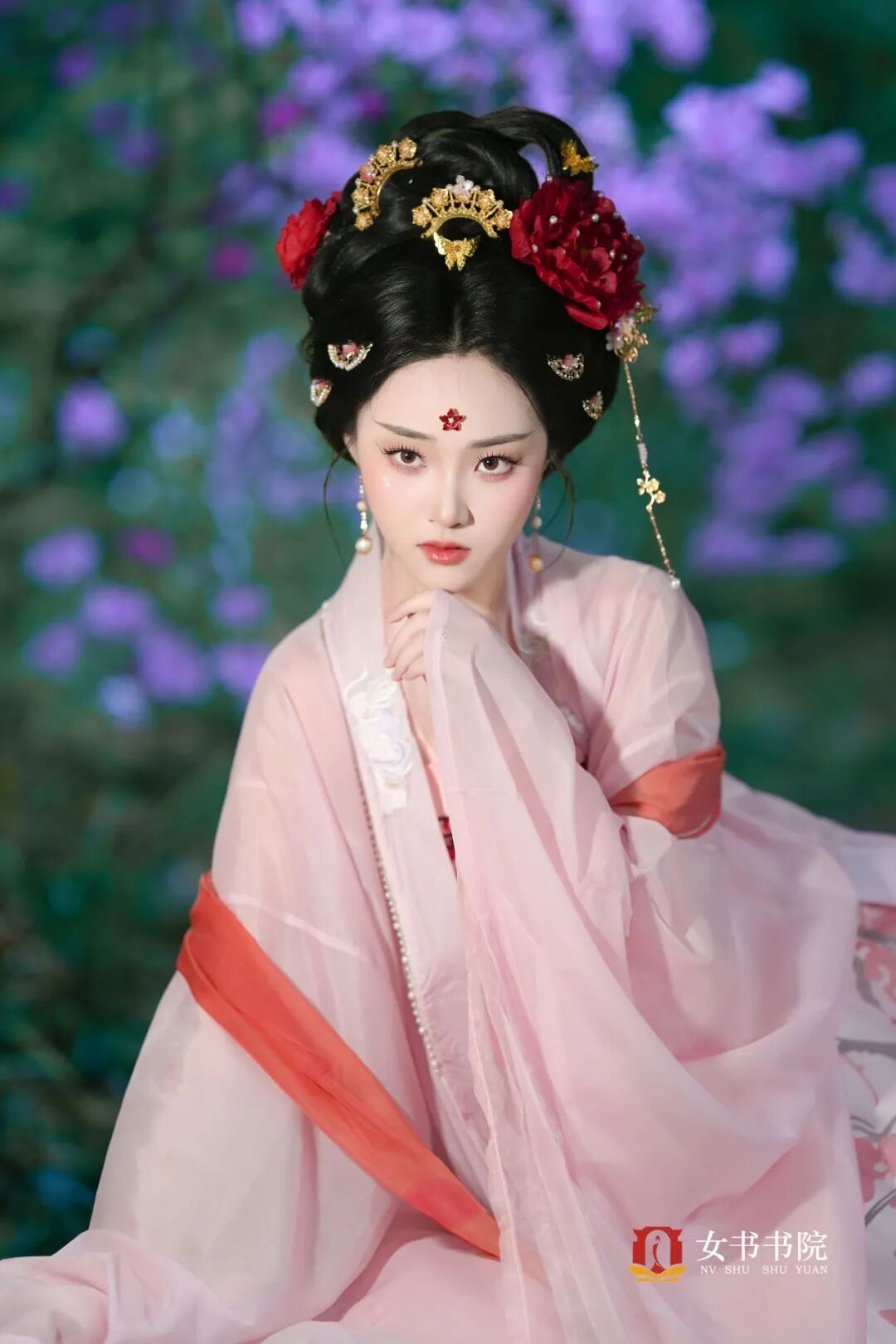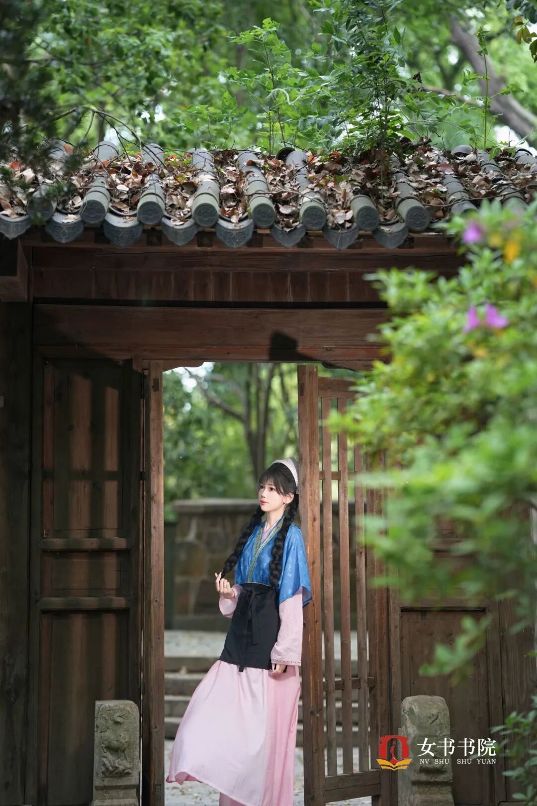 女书书院的汉服写真, 把江南的温婉与春日的烂漫, 定格在纮齐院的木构与北园的花影间。