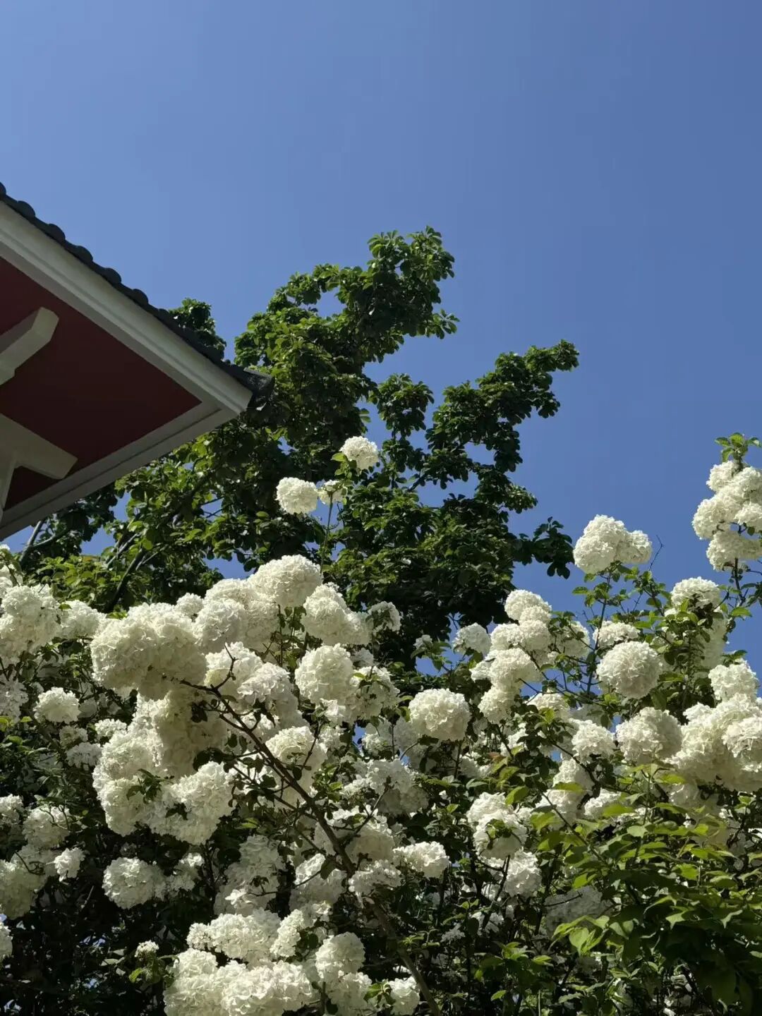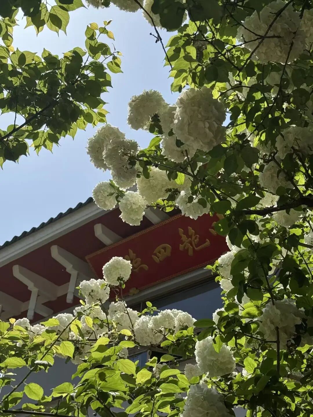 不同于夏日里会变色的绣球,梅园的木绣球是独属于春日的雪球荚蒾,只有纯粹的白与绿,却把江南的清雅揉得淋漓尽致。古石、白瓣、蓝天相映,像一幅晕开的工笔画,随手一拍,都是不加滤镜的温柔。
