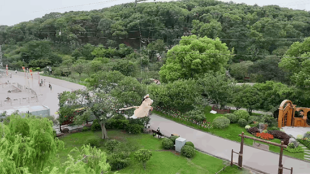 演员翩跹登场,在花海映衬下散花, 万千花瓣随微风落在花丛间 仿佛闯进仙境