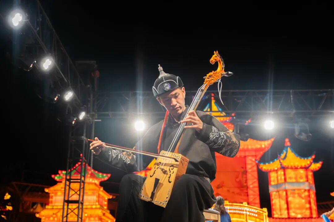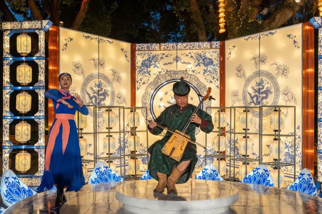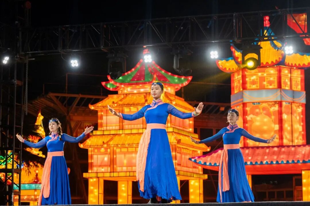 ✅蒙元迎宾开场: 梅字石雪狼灯组前,蒙元勇士热情迎宾🔥; 蒙舞天青舞台看蒙古舞 + 马头琴秀,氛围感拉满