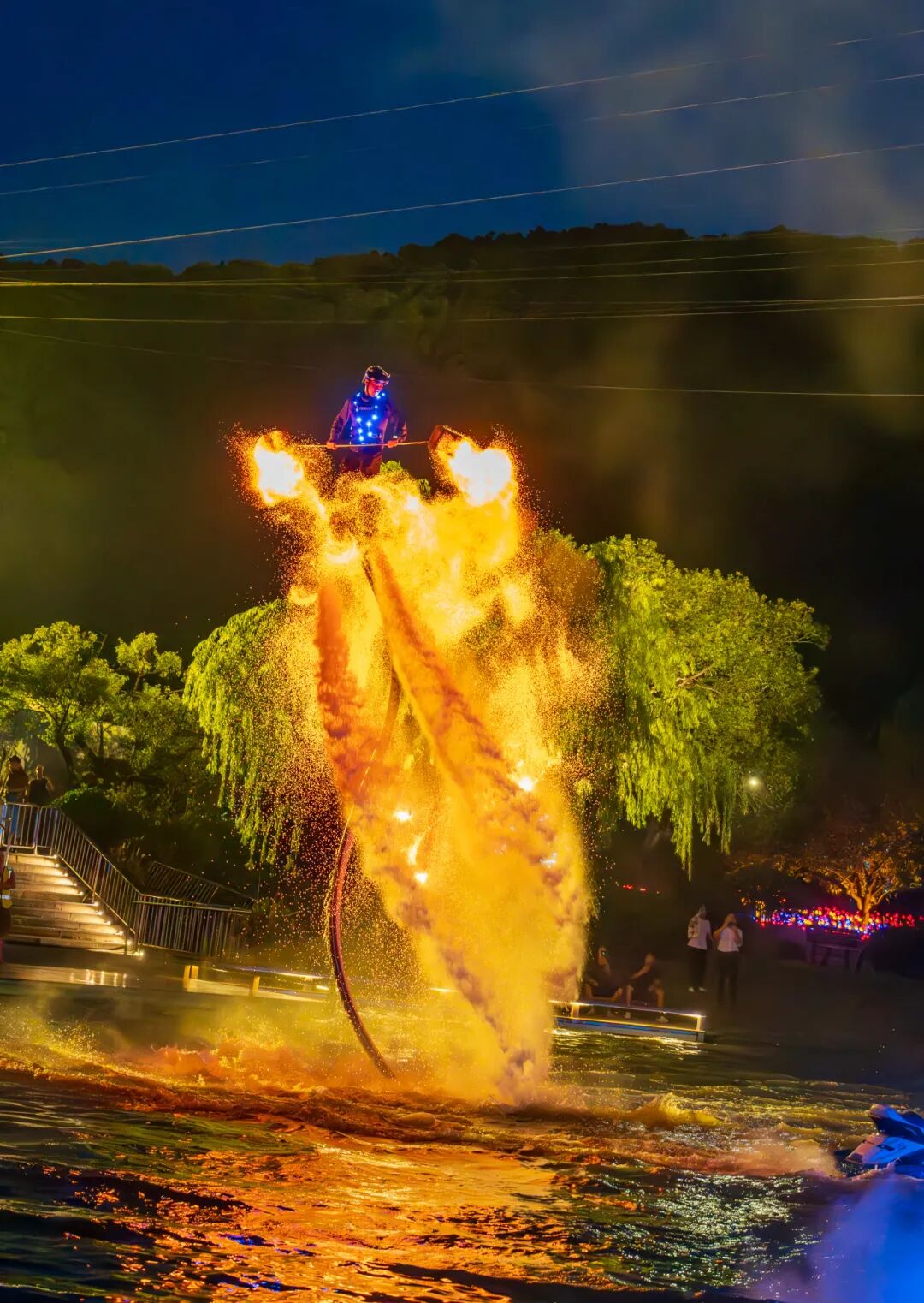 ✅荷兰广场主舞台“苍穹火舞”上线 火刀划夜空、火壶喷金浪、火虎吞烈焰… 非遗绝技燃到心跳加速🚨!