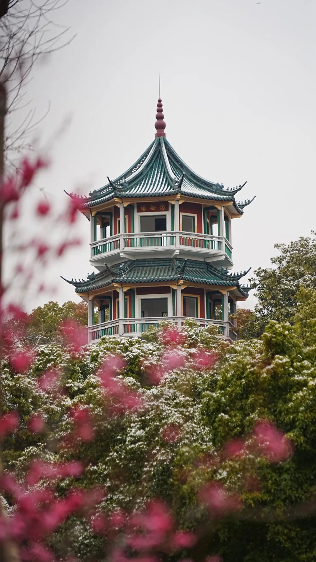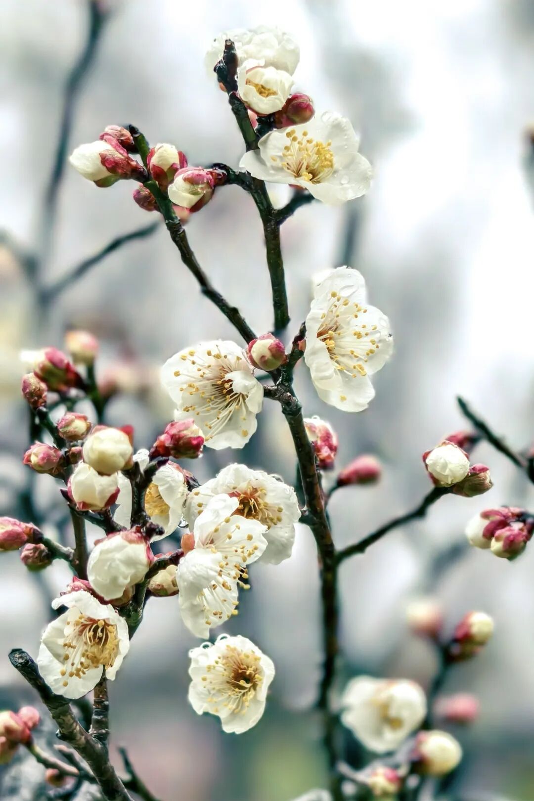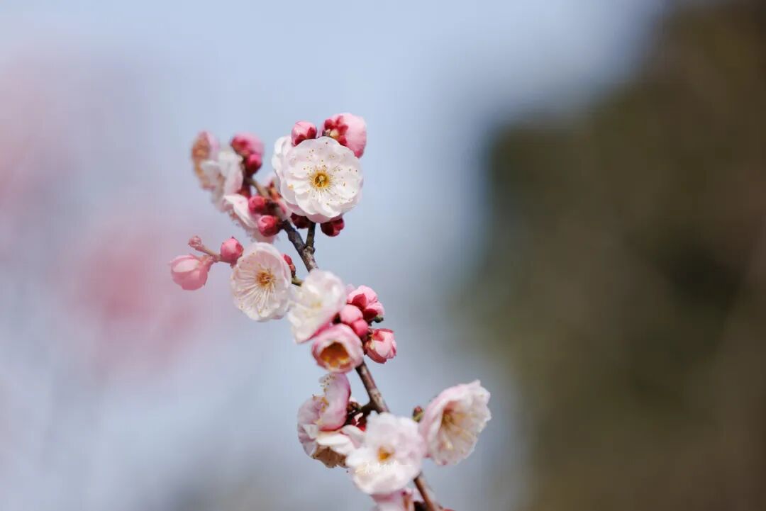 早梅也次第舒展花瓣,粉白、嫣红的花苞与花朵缀在枝头,搭配残雪与亭台楼阁,勾勒出最经典的江南冬春交界之美。