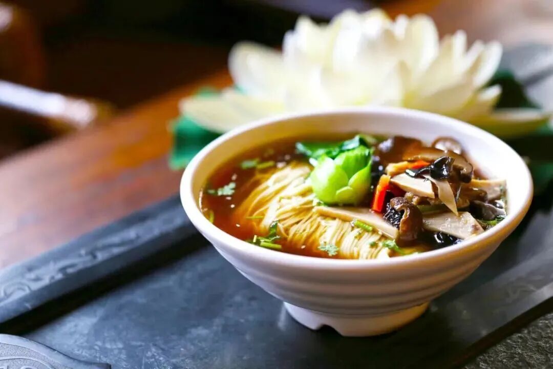 逛累了?赴一场舌尖上的禅意之约。五一专属福面套票,让你在赏花游园之余,品尝一碗鲜香醇厚、福气满满的自在面馆素面。 ![]() 面汤不放味精和鸡精,只靠菌菇、笋等食材组合与配制调出鲜味浇头则是若干青菜、木耳、香菇、胡萝卜、蘑菇和笋等烹制而成具体搭配会根据时节而变口感、色彩相得益彰。 ![]() 福面的食材,包括高汤和浇头。 均绝不过夜,不做反复烹饪 谁说这不是一种精进与舍得的态度呢? 锲而不舍、专注于鲜素的好味道 出得一碗汤头鲜甜甘醇、 口感劲道爽滑的素面 ![]() ![]()