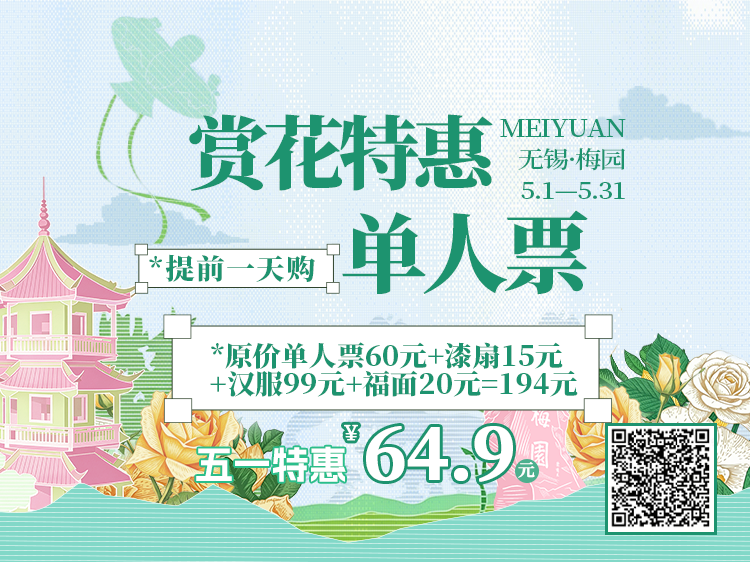 ![]() 着一袭华服,赴一场花约。 梅园五一限定汉服套票火热上线! 无需自备华服 无锡梅园,从仙气飘飘的襦裙, 到端庄大气的马面裙,多款古风美服任你挑选。
