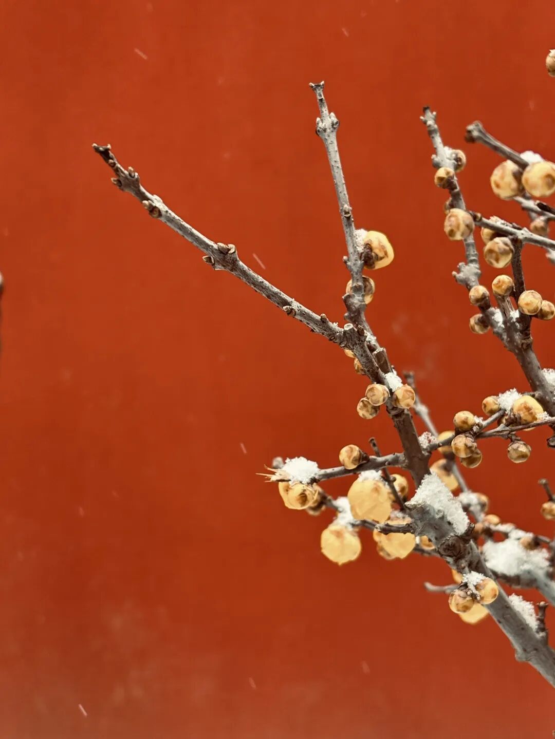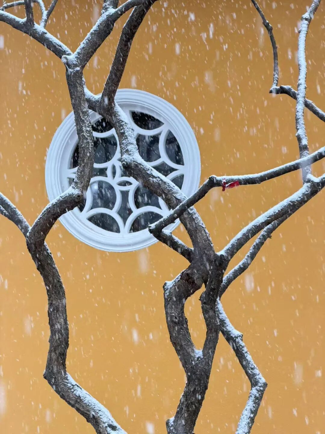 恰逢一年中最冷的时节,琼枝覆雪,暗香浮动,此刻园内蜡梅已绽放初具规模,梅花也携着娇羞悄然零星吐露芬芳,这场雪与梅的邂逅,正是冬日里最动人的馈赠。
