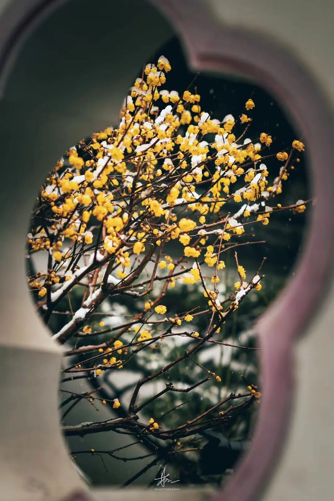 花枝轻颤,黄蕊微露, 似藏着冬日的私语, 每一朵都透着“凌寒独自开”的坚韧与雅致。 ![]()