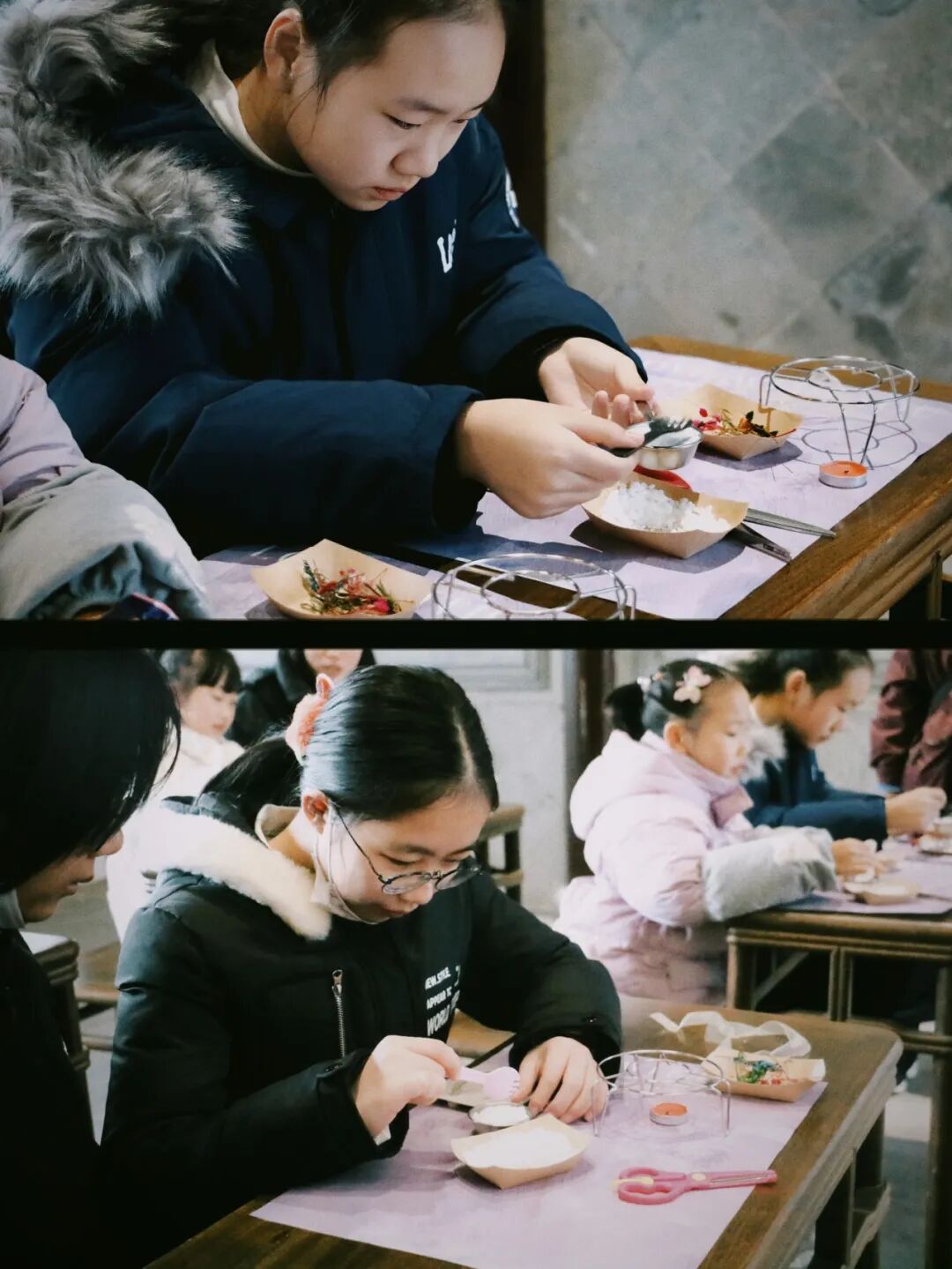 ![]() Hello2026 ![]() 骏马开新局 ![]() 新的一年,奔赴更好的未来 ![]() 了解完蜡梅的智慧 就来动手做专属香薰蜡牌吧! 小朋友们一步步解锁技能 融化蜡块、倒入喜欢的模具,再摆放干花点缀 滴入清香的梅香精油,静静等待定型~ 从蜡块融化的温润触感 到干花搭配的创意搭配 每一步都藏着小乐趣。 成品晾干后就能带回家 把冬日梅香定格在蜡牌里 让家里时时萦绕着淡淡的清香与手工的温馨, 这份独一无二的研学纪念,超有意义~