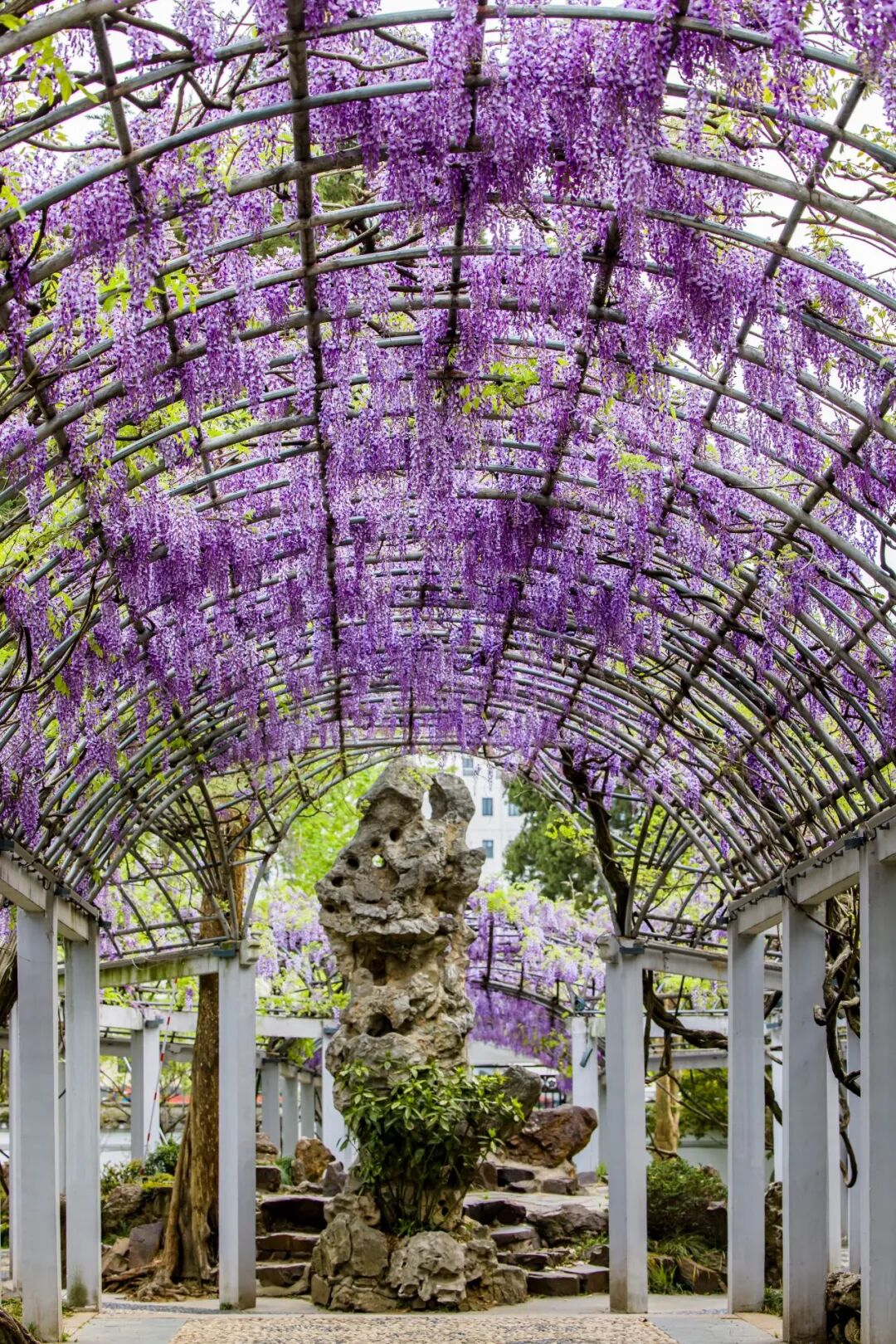 ![]() ![]() 今日的梅园西门,是百年前荣氏梅园初建时的老大门,静立东山南麓,迎送往来游人,也守护着园中的一方梅香。跨进这扇门,便踏入了荣德生先生「为天下布芳馨」的初心之境,百年的时光仿佛在此慢下脚步,园林的清幽与人文的厚重扑面而来。 百年紫藤 ![]()