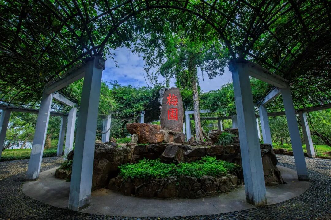 初心起点 ![]() 园门内,一株荣德生亲手栽植的百年紫藤静静伫立,环廊满绕,虬枝盘曲,依旧是当年「老树纷披,虬藤起舞」的模样。早年的紫藤棚以松木、毛竹为架,历经岁月更迭,如今换为水泥立柱支撑,却依旧守着园中的一方清幽。南墙上1998年新镌的刻石字迹清晰,「乐农居士手植」六字,将荣氏创始人的匠心与情怀凝于石上,成为跨越百年的印记。这株百年紫藤的花期为4-5月,每至暮春,紫穗悬垂,暗香萦绕,与古园景致相映成趣,是梅园老西门旁独有的春日盛景。 ![]() ![]() ![]() 紫藤架下,一方紫褐色巨石巍然屹立,高2米有余,宽0.7米,重达1.5吨,石面「梅园」二字笔力遒劲,这是荣德生先生1916年的亲笔手书。初建梅园时,先生曾想请名家题写园名,却始终未遇合意之作,最终亲书二字,落笔皆是对这片梅园的深情。原刻石于岁月中损毁,现刻石为1980年按旧照临摹重镌,石旁古柏掩映,老梅斜枝,暗香浮动,恰是「疏枝横玉瘦,小萼点珠光」的诗意意境,一眼便将人带入梅园以梅造园、以梅寄情的核心底蕴。 ![]() ![]() 老西门不仅是梅园的物理入口,更是解读荣氏梅园的文化入口。1912年,荣德生先生在此购地筑园,倚山植梅,以梅饰山,从这扇门开始,将一片荒山打造成江南著名的赏梅胜地,也将荣氏家族的儒商情怀、桑梓之心藏于园林的一草一木之间。 ![]() ![]() 以梅会友 这扇门,见证了梅园的百年变迁:从最初的千株梅林,到如今的万株梅海;从荣氏家族的私家园林,到惠及大众的文旅胜地;从建园之初的「与众人同游乐」,到如今荣氏后人代代传承的桑梓情深。2026年的今天,荣氏家族后人仍心系梅园,梅园提升工程让老园焕新颜,「梅王」枝头绽芳蕊,这扇百年老西门,依旧在见证着梅园的新生与荣光。 ![]() ![]() 这扇门,也藏着荣氏梅园的文化内核。荣德生先生一生秉持耕读传家的理念,梅园的建造既循「道法自然」的审美原则,又融「耕读为本」的家族初心。老西门内的一藤一石,一梅一柏,皆是这种理念的具象表达:紫藤寄情,是先生对生活的热爱;「梅园」题石,是先生对初心的坚守;老梅映石,是荣氏家族如梅花般坚韧不屈的精神象征。荣智健先生曾说,荣家的精神就是梅花精神,而这扇老西门,正是这份精神的第一重见证。 ![]()