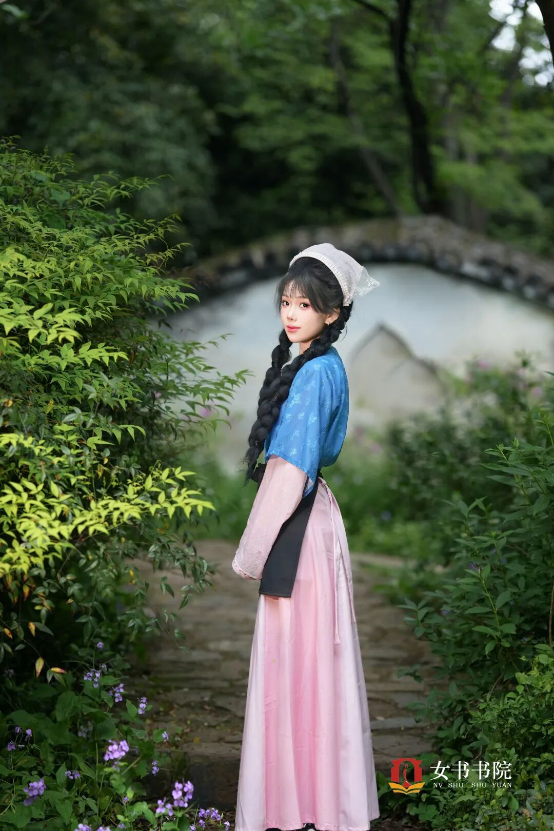 女书书院的汉服写真, 把江南的温婉与春日的烂漫, 定格在纮齐院的木构与北园的花影间。