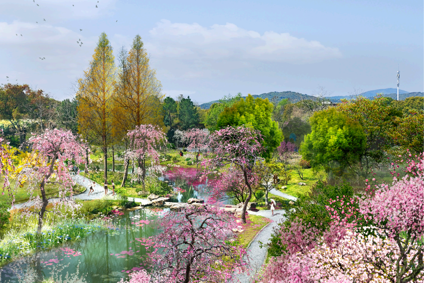 水系叠瀑效果图 春天,从梅园开始 临水探梅