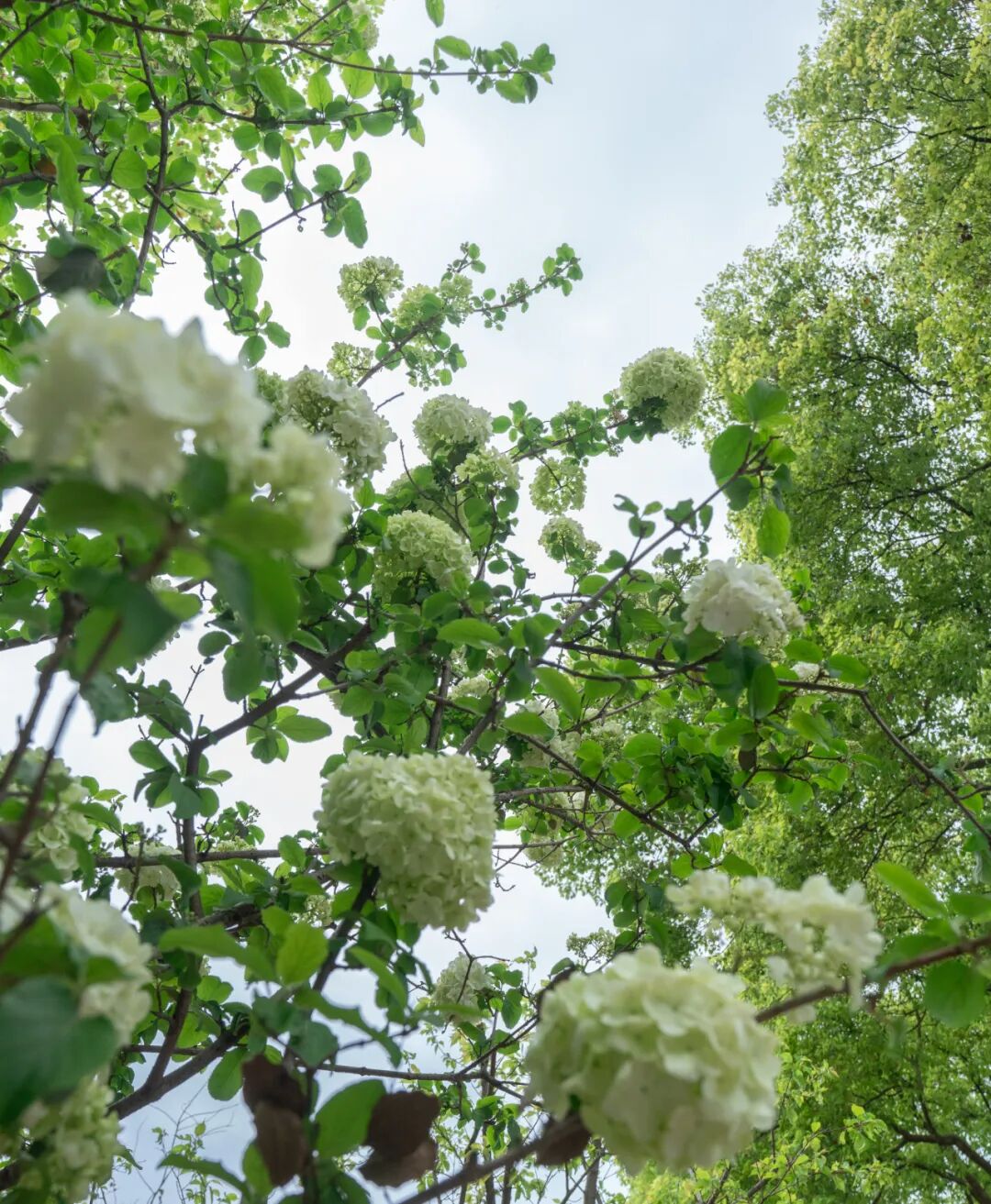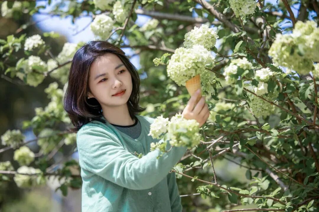 更值得期待的是,梅园的木绣球也蓄势待发,即将为这封春日来信添上最圆满的一笔。一朵朵饱满的花球缀满枝头,似一个个可爱的冰激凌球,由无数小花簇拥而成,洁白如雪、圆润雅致,这便是中华木绣球独有的模样。它承载着“团圆、美满”的花语,待盛放之时,便会将无尽的欢乐与祝福,一并送给每一位赴约的人。