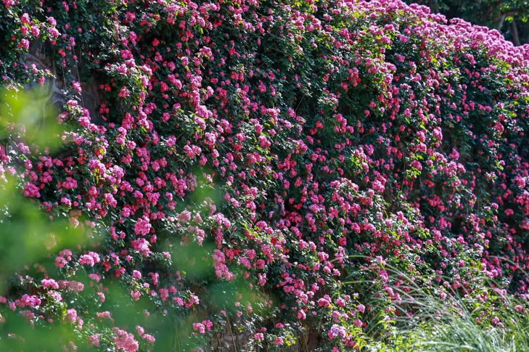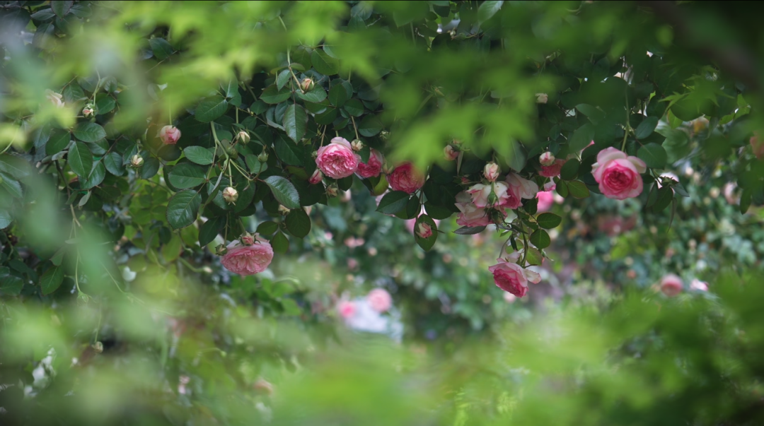 别墅前的藤本月季瀑布, 是本次打卡的王牌点位! 成千上万朵粉色月季爬满墙面, 在青砖黛瓦的映衬下,自带江南滤镜。 45度的斜阳穿透花影, 光影在花瓣上跳动, 随手一拍,都是自带柔光的氛围感大片, 轻松承包你的朋友圈九宫格。